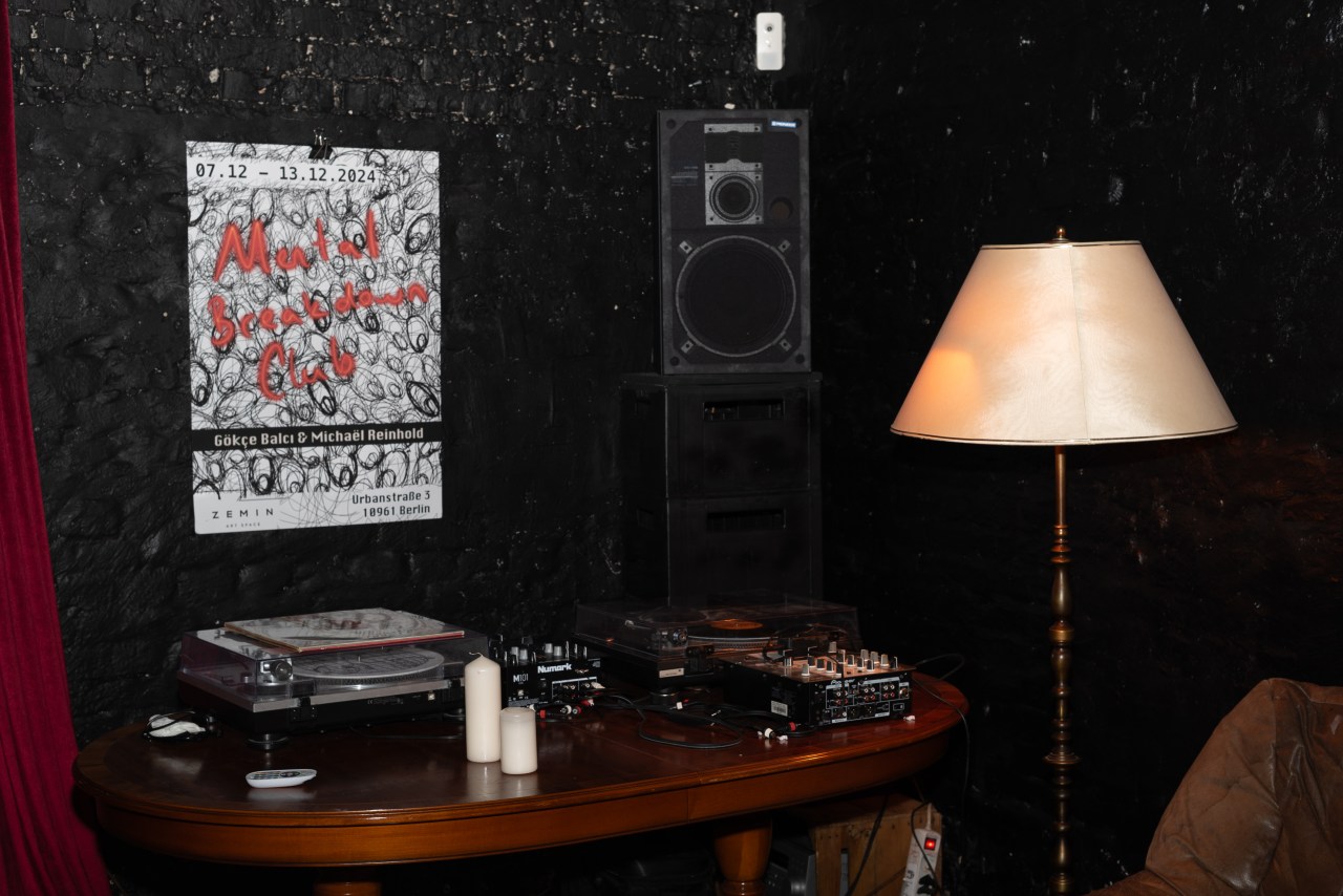 “Mental Breakdown Club” is a thought-provoking exhibition that challenges viewers to confront taboos surrounding mental health and societal norms. Through the intimate and confessional works of Gökçe Balcı and the transformative performances and video works of Michaël Reinhold, this exhibition offers a powerful exploration of vulnerability, identity, and the unspoken human avoidance. With Mental Breakdown Club, Gökçe Balcı & Michaël Reinhold present video, painting and performance works that deal with phenomena of psychologic fragility in every day’s life situation and the often-unspoken tabus that comes with it. Balcı, who approaches the subject from a physical and autobiographical perspective, presents paintings and installations that expose her personal (female) struggles and mind as a tool of confession, in an aesthetically more traditional manner, allowing it to meet with the audience on a common ground. Reinhold, on the other hand, seeks to treat his (male) body as a transformable shell and interacts in his experimental films and performances with the space and visitors as Dr. Bacalhau, one out of many art figure he invented – as an alter ego. Both thematize and move on the threshold of the inevitable and explore ways to make it visible, productive, and performative.