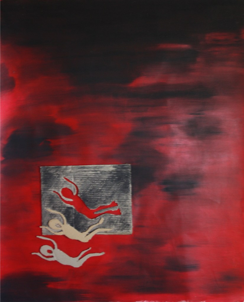 Stuck In “Outside of the Circle”, 2020, mixed media, 100 x 70 cm“Repeat Itself”, 2020, mixed media, 127 x 100 cm“Habit”, 2020, stitching on the back of the canvas, 35 x 50 cm“Different”, 2020, stitching on the back of the canvas, 25 x 35 cm